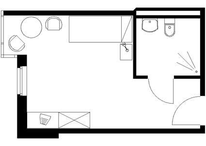 Die überwiegende Mehrzahl der Zimmer sind Einzelzimmer mit separatem Bad/WC, darunter haben viele einen Zugang zum Balkon bzw. zur Terrasse. Die Zimmergrößen variieren zwischen 25 und 28 qm.