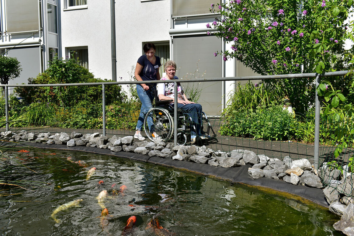 Der Gebäudekomplex besteht aus einem historischen Teil – einer in der Gründerzeit errichteten Villa mit alten Holztüren und Dielenparkett in den Gemeinschaftsräumen – und einem harmonisch angefügten jüngeren Gebäudeteil. Die Ausstattung des Hauses ist insgesamt modern. Unser Haus verfügt über einen großzügigen hellen und freundlichen Mehrzeckraum, der flexibel als Speisesaal, Caféteria, Andachtsraum oder als Veranstaltungsraum für Feste und Feiern dient. Besonders schön ist unser parkähnliche Innenhof mit einem idyllisch angelegten Fischteich im Zentrum.